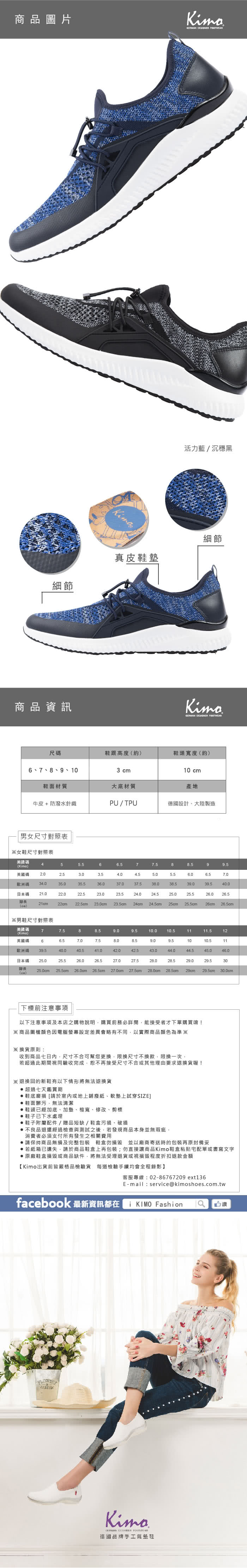 【Kimo】防潑水針織布運動風平底休閒鞋(沉穩黑D5718SM004013)鞋子重量會很重嗎尺寸規格要怎麼看