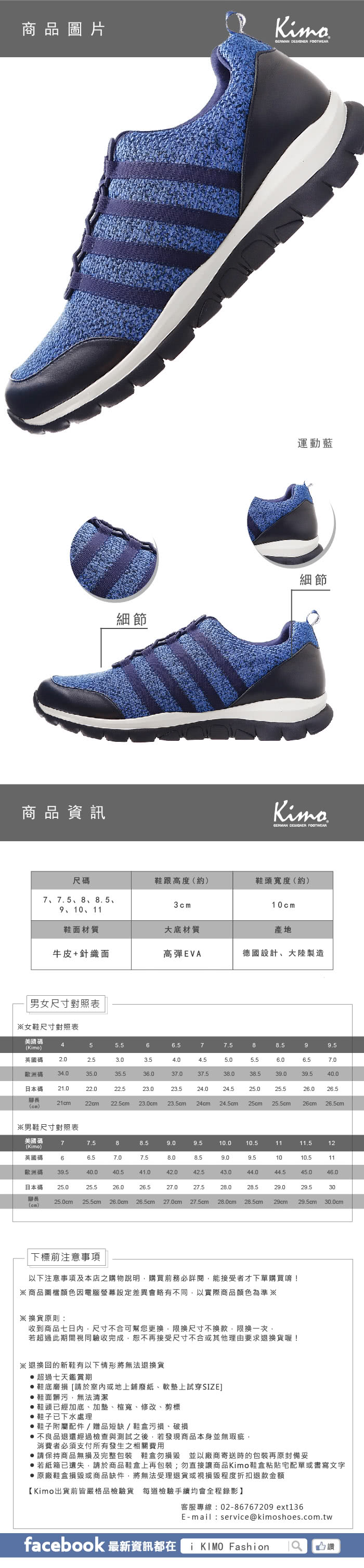 【Kimo】型男柔軟針織+牛皮輕質休閒鞋(運動藍K18WM009096)鞋子重量會很重嗎尺寸規格要怎麼看