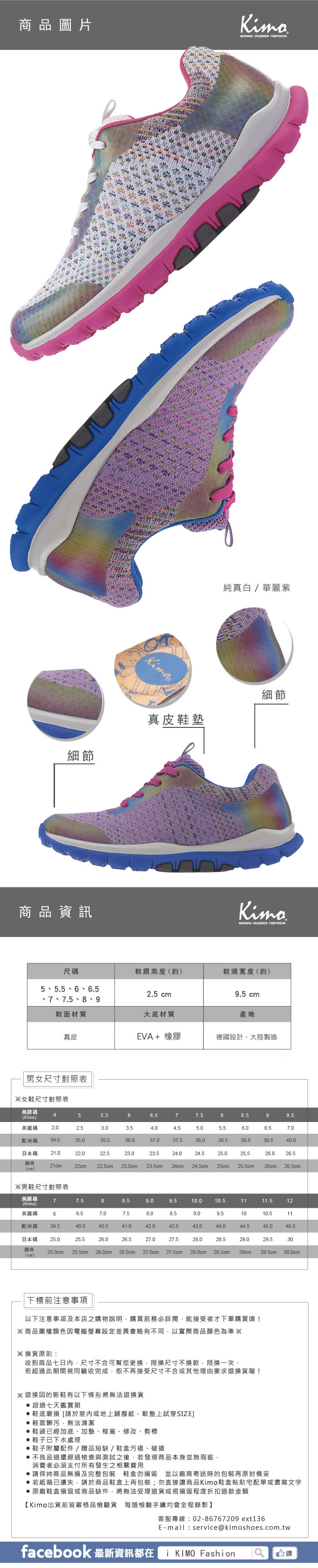 【Kimo】炫彩彈力網布運動風平底休閒鞋(純真白KAISF078160)鞋子重量會很重嗎尺寸規格要怎麼看