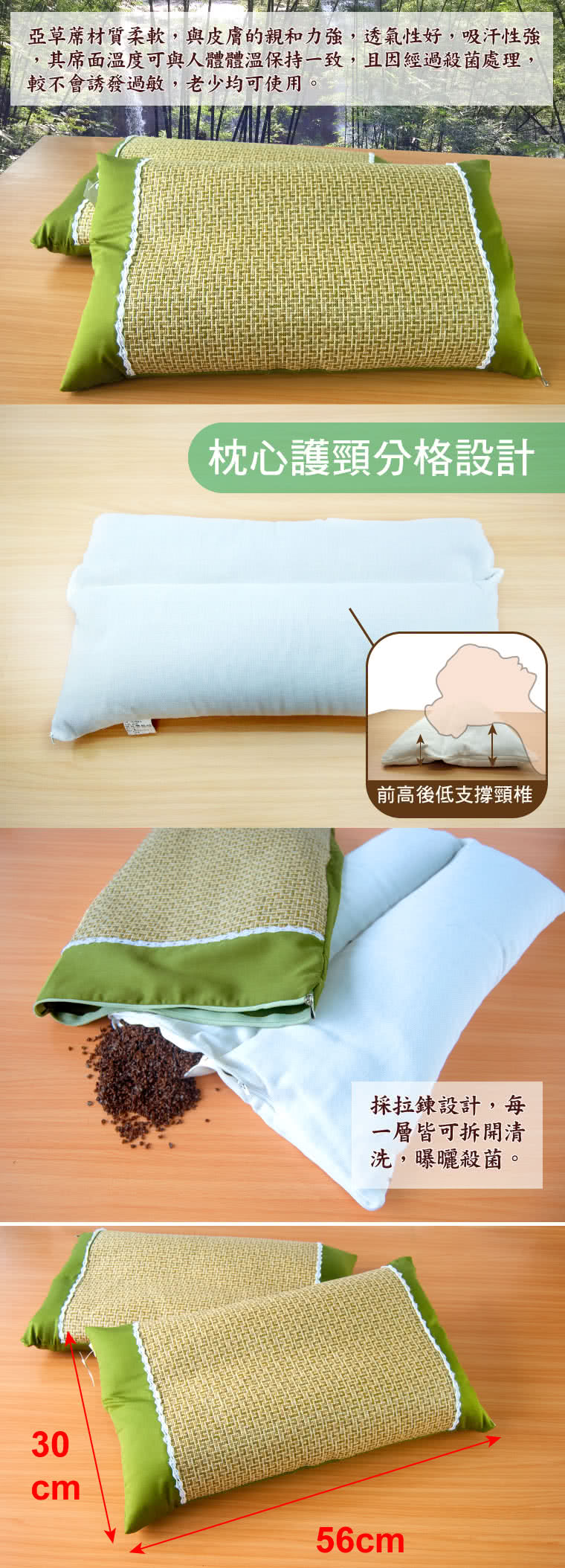 【Lassley蕾絲妮】綠豆殼亞藤舒眠枕-綠色蕾絲(台灣製造 冬夏兩用 舒眠 天然 透氣 清涼 殼枕 草蓆)品質好嗎耐用嗎睡起來舒服嗎