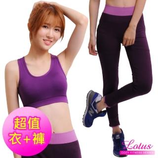 【LOTUS】運動套裝 撞色線條 慢跑無鋼圈運動內衣+彈力運動九分褲 兩件組(運動套裝 超值兩件組)有開箱心得文可以看嗎