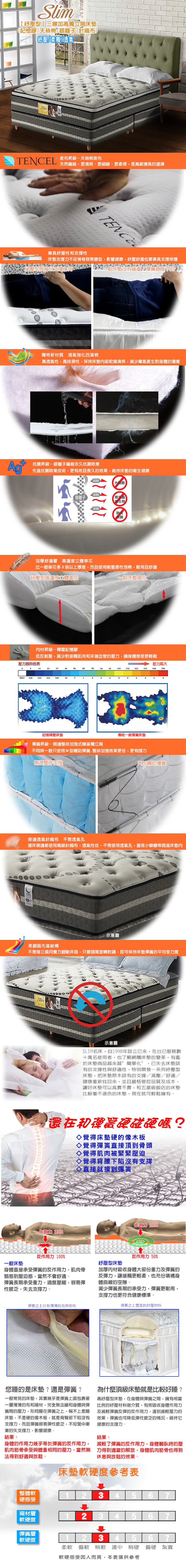 【SLIM 紓壓型】三線加高獨立筒床墊-雙人加大6尺(記憶膠/天絲棉/銀離子/針織布)到哪裡買比較便宜還有哪些類似商品