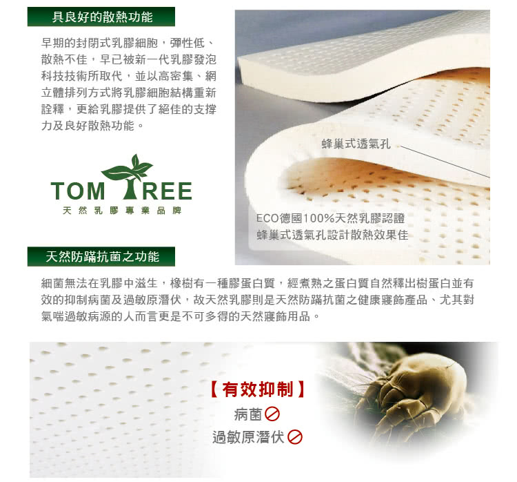 【TomTree】枕頭 / 天然乳膠枕 頂級斯里蘭卡 天然乳膠(天然乳膠 乳膠枕 麵包枕)透氣效果好嗎睡起來會悶熱嗎符合人體功學嗎