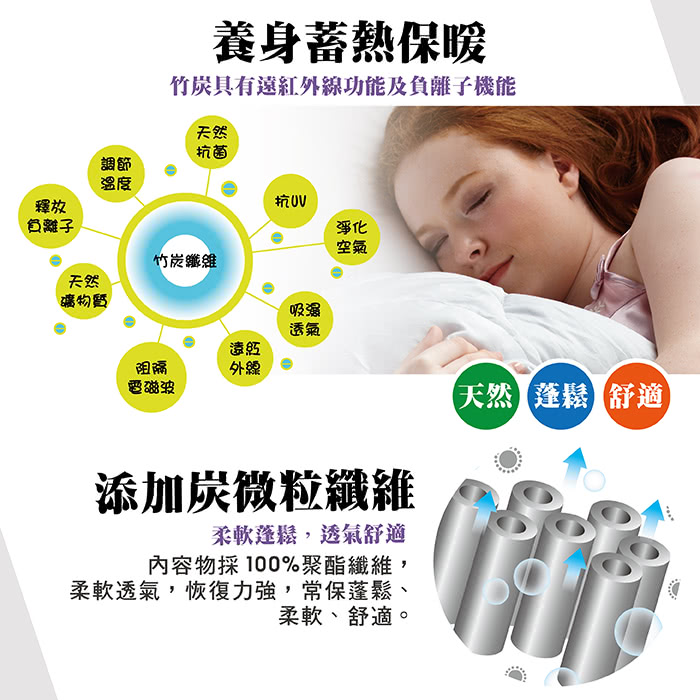 ●淨化空氣調節濕度,釋放遠紅外線釋放負離子彈性支撐、舒適擁有好睡眠,輕柔蓬鬆透氣保暖吸濕。